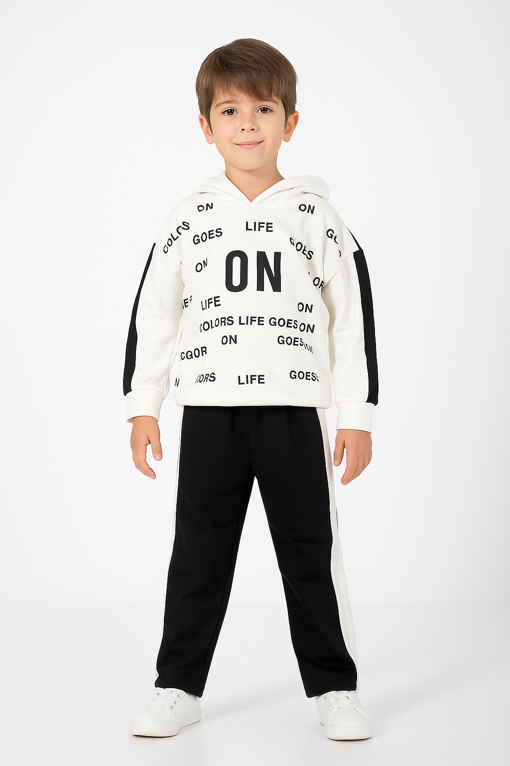 Oğlunuzun tarzına modern bir dokunuş katacak Life Goes On Baskılı Kapüşonlu Erkek Çocuk Siyah Alt Üst Takım ile hem rahatlığı hem de şıklığı keşfedin. Hemen sepetinize ekleyin!