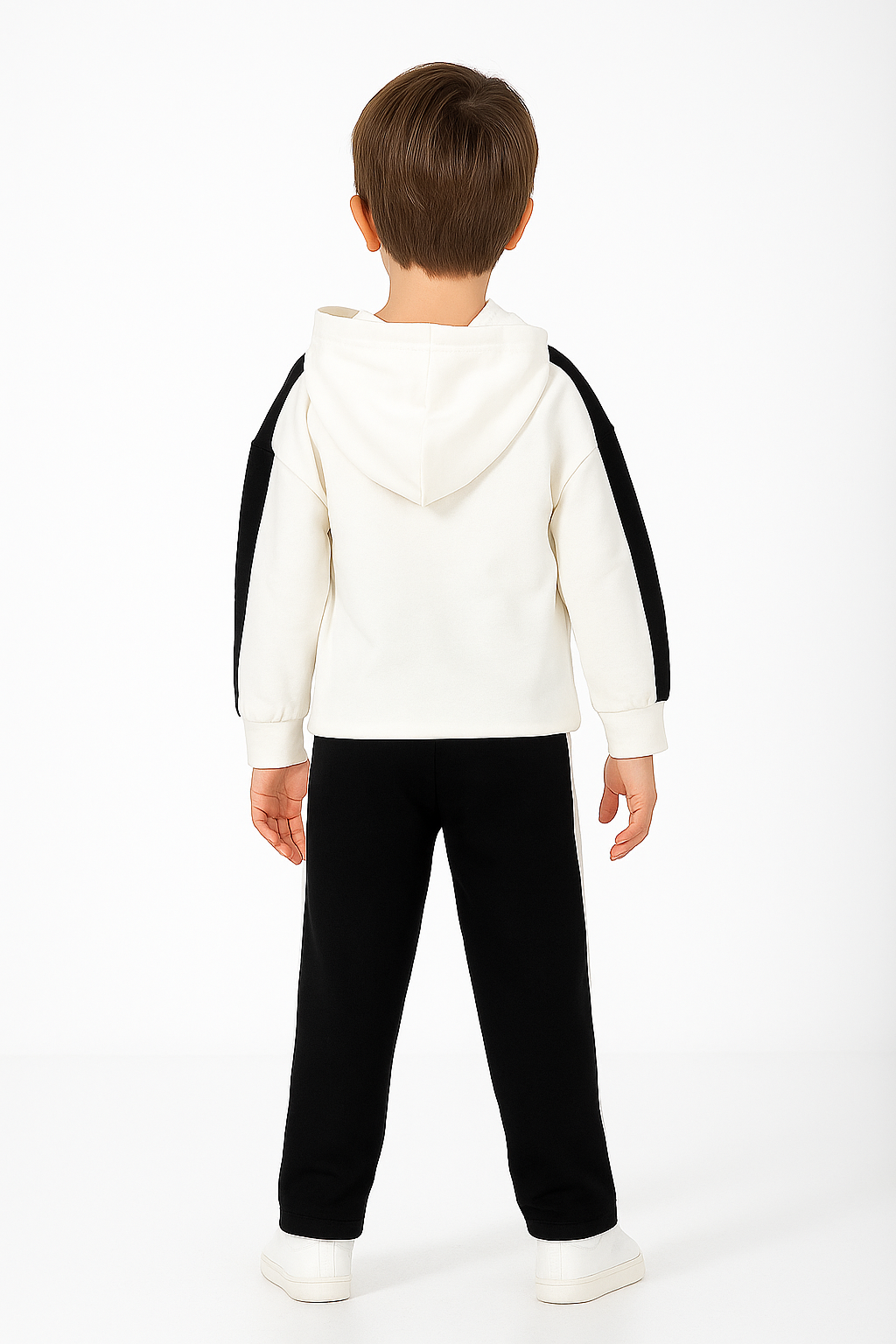 Yumuşak ve nefes alabilen kumaş yapısı çocukların hassas cildine dosttur. Esnek kesimi sayesinde gün boyu hareket özgürlüğü sunar. Okulda, oyun parkında, evde ya da dışarıda kolaylıkla tercih edilebilecek pratik bir üründür. Kapüşon detayı ile modern bir görünüm sunarken, alt üst uyumlu tasarımı sayesinde rahat kombin imkanı sağlar.