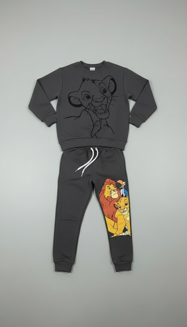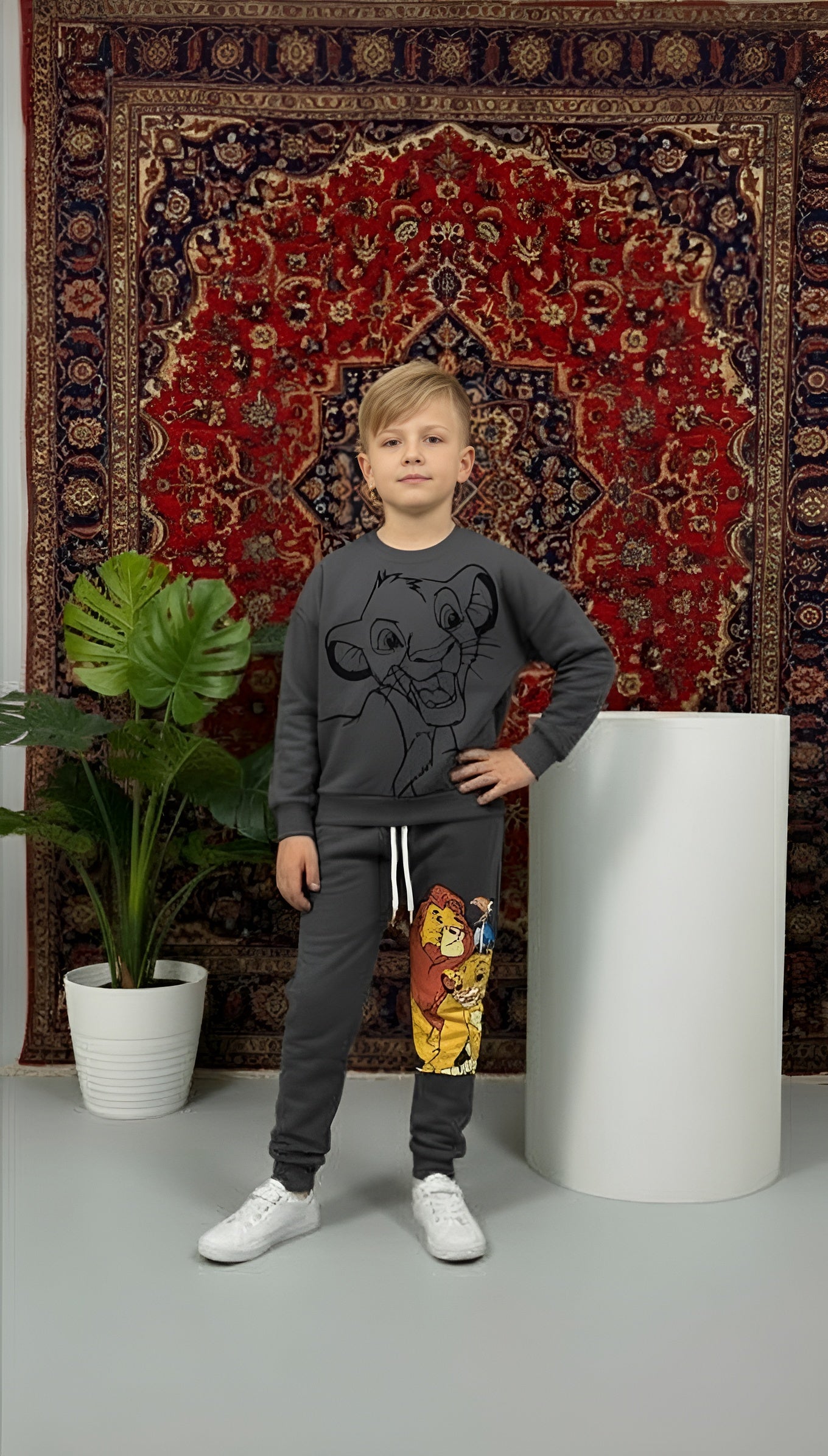 Küçük aslanınızın gün boyu rahat, sıcak ve tarz görünmesini sağlayan Lion King Baskılı Erkek Çocuk Antrasit Alt Üst Takımı hemen sepetinize ekleyin! 🦁✨