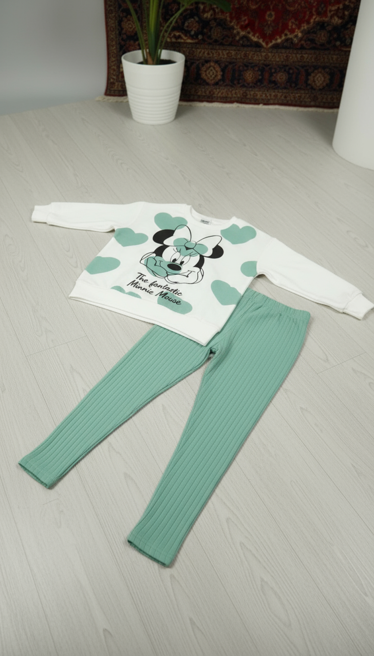 Minnie Yazılı Kız Çocuk Yeşil Alt Üst Takım (3-10 Yaş)