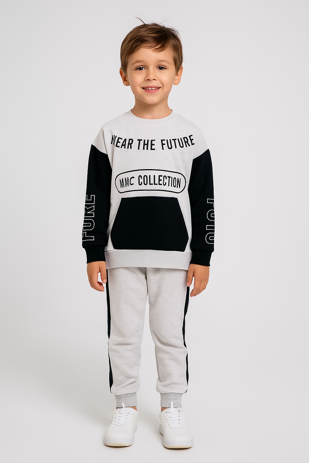 Modern tasarımı ve rahat yapısıyla öne çıkan Wear The Future Baskılı Erkek Çocuk Gri Alt Üst Takım, kanguru cepli üstü ve sportif çizgisiyle çocukların enerjik tarzına hitap ediyor. Gri rengin şıklığı, özel baskı detayıyla birleşerek günlük kullanım için ideal bir kombin sunuyor.